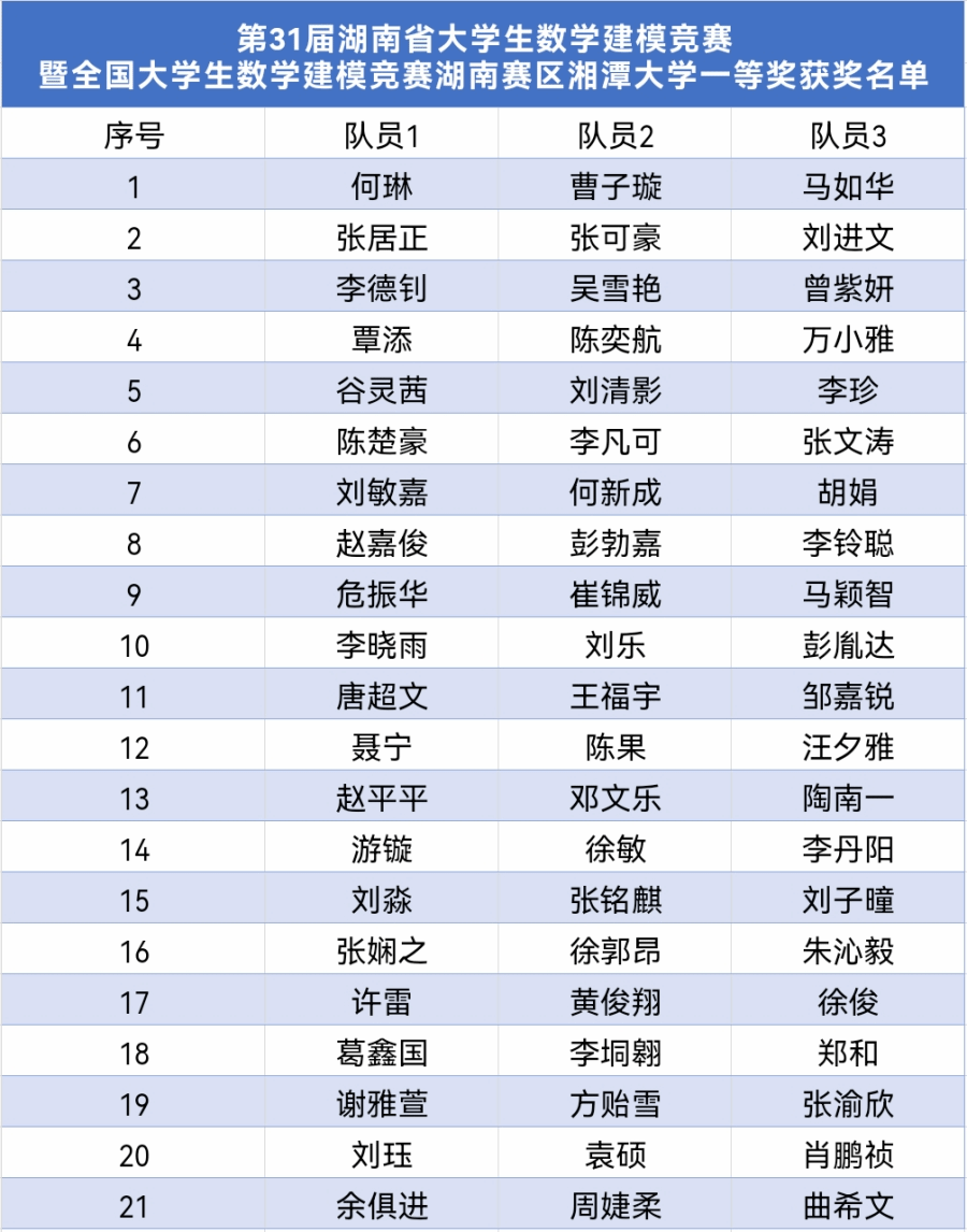 近日,2024年第31届湖南省大学生数学建模竞赛暨全国大学生数学建模竞赛结果揭晓,成人短视频 获湖南赛区一等奖21项(获奖率15.4%)、二等奖23项、三等奖23项,一等奖获奖数及获奖率在湖南赛区均排名第一。