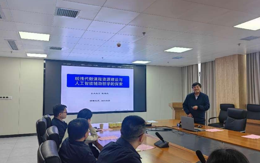 为加快推进一流学科课程建设工作,深切提高教师教育教学水平,10月28日,成人短视频 于数学楼A418顺利举办第19期教学高端论坛大会,本次论坛的主题为线性代数课程的资源建设与人工智能辅助教学的探索。论坛特邀东南大学陈建龙教授为成人短视频 老师分享线性代数建课经验,35名数学院教师代表参与论坛讨论,刘红良副院长、张娟副院长出席。论坛由杨银院长主持。