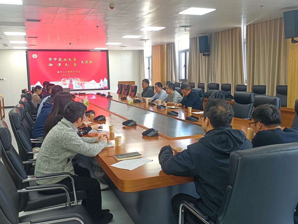 2024年10月24日下午2点30分,成人短视频 A418会议室迎来了一场重要的学术交流活动。来自华中农业大学信息学院的章文院长/教授、胡学海教授/大数据系系主任、刘世超副教授、牛晓辉副教授等四位知名学者访问成人短视频 ,双方就大数据专业的建设与发展进行了深度探讨。
