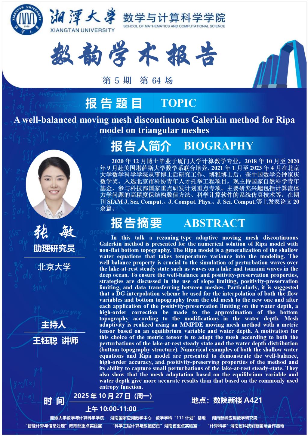 数韵学术报告-A well-balanced moving mesh discontinuous Galerkin method for Ripa model on triangular meshes