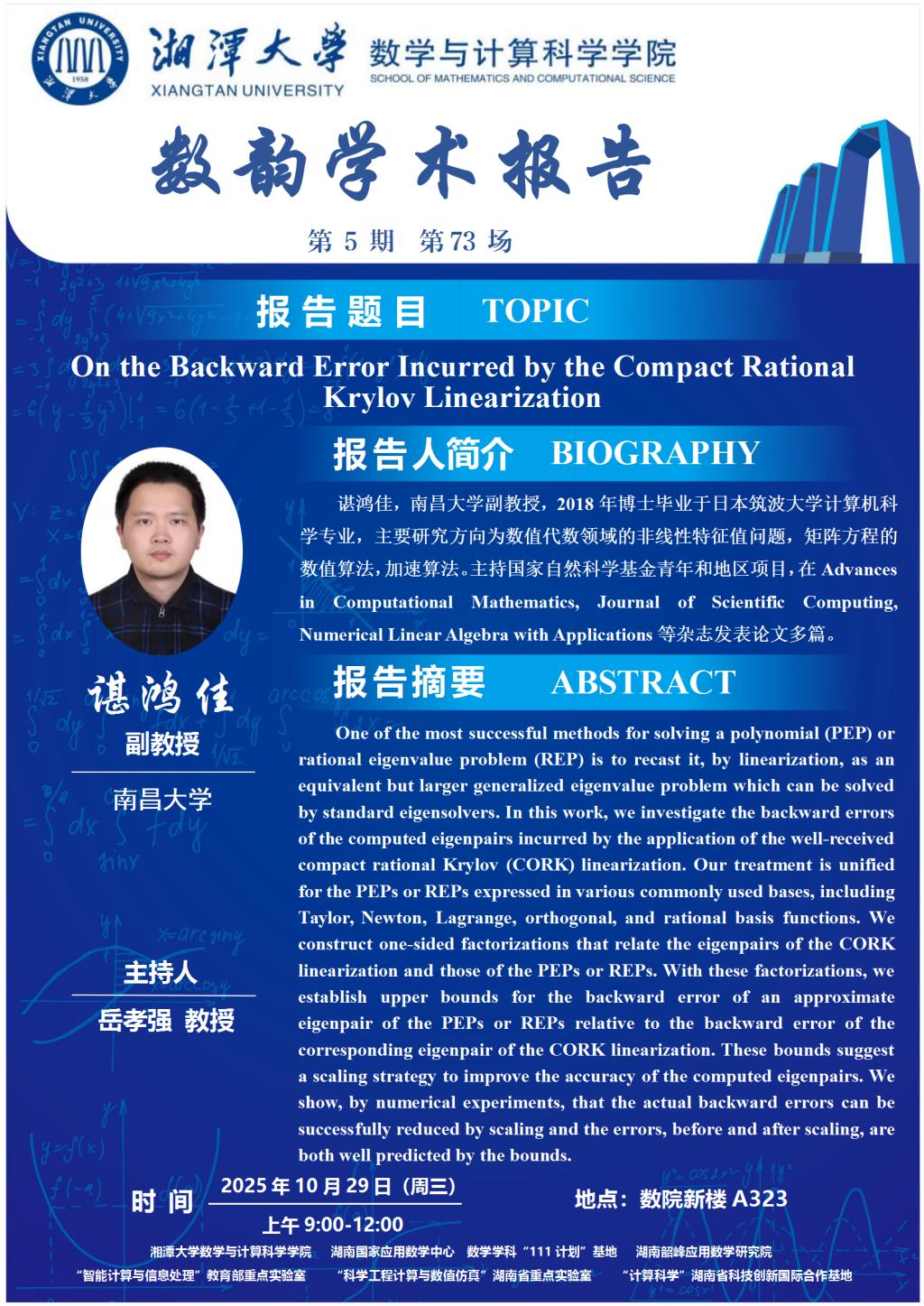 数韵学术报告-On the Backward Error Incurred by the Compact Rational Krylov Linearization