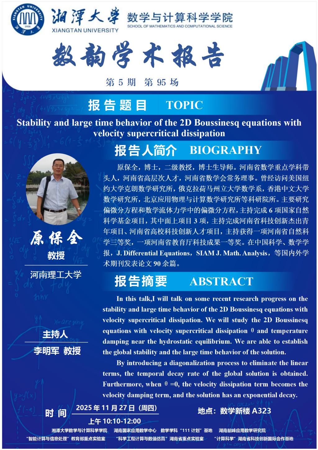 数韵学术报告-Stability and large time behavior of the 2D Boussinesq equations with velocity supercritical dissipation