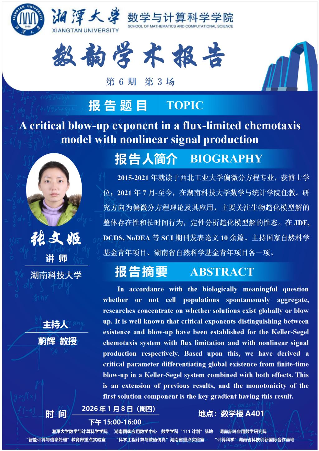 数韵学术报告-张文姬-A critical blow-up exponent in a flux-limited chemotaxis model with nonlinear signal production