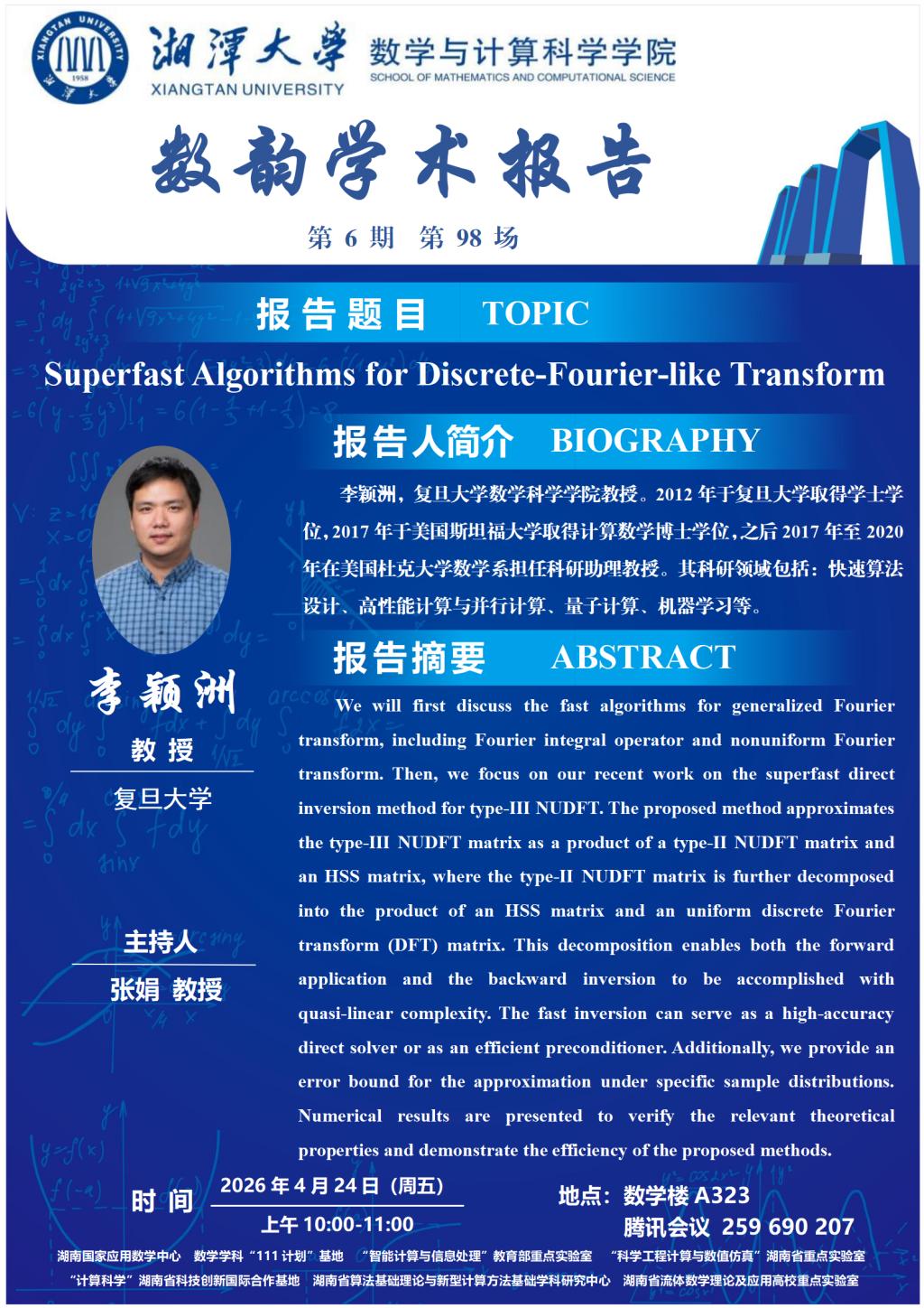 数韵学术报告—李颖洲—Superfast Algorithms for Discrete-Fourier-like Transform